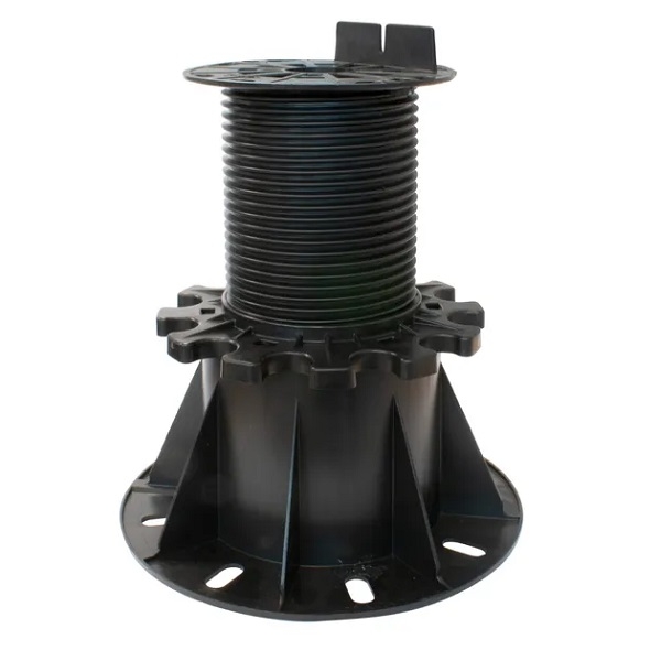 A Base Arkimede 115, fabricada em Polipropileno, é um suporte telescópico para decks sobrelevados, com altura ajustável com mínimo de 115 mm e máximo de 220 mm.