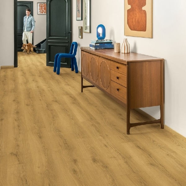 Diga adeus aos problemas de humidade, ao escolher um pavimento Quick-Step resistente à água. Estes pavimentos não só têm um aspeto excecionalmente elegante e natural, como também são 100% resistentes à humidade, o que faz com que limpá-los seja mais fácil do que nunca!